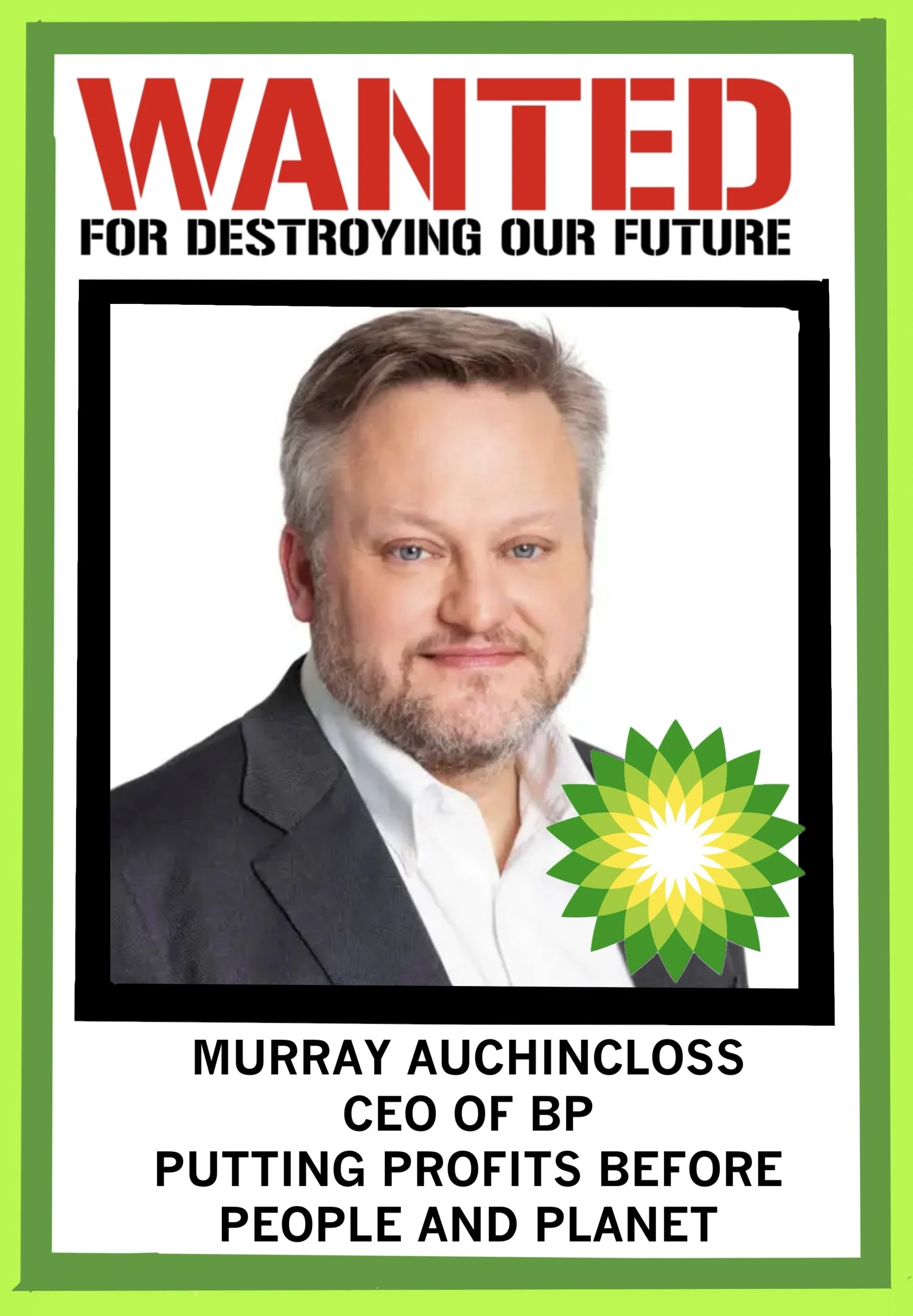 This poster is about a very naughty man who went back on his company’s promise to increase their investments in renewable energy. Instead he is doubling down on drilling for oil and gas! BOO!